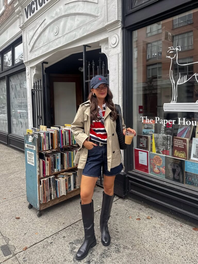 Yes, you can wear this outfit and go for a stroll in your city, that is, you can roam around in your city. In this, you will get to see a cropped top which is very beautifully designed and with this, you have to wear these knee-length boots which are best to make you feel tall. With this, how are these denim shorts which are tightened with a belt.