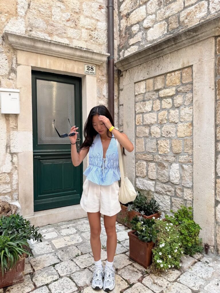 1. Blue Halter Top With Chic Y2K summer white skirt