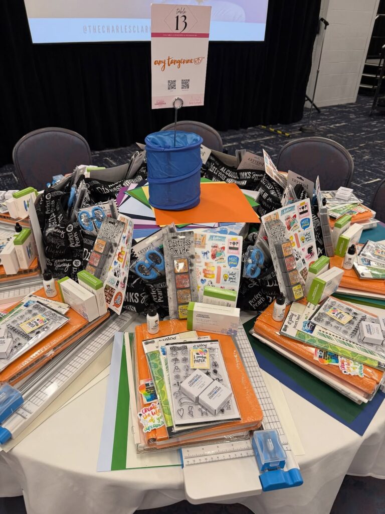 This table is full of crafting material in which some green, golden, pink, some tapes and some new Christmas decoration material are kept which will give you a very cool look this Christmas and along with this you have to use some new color papers also which will make your office look colorful this Christmas